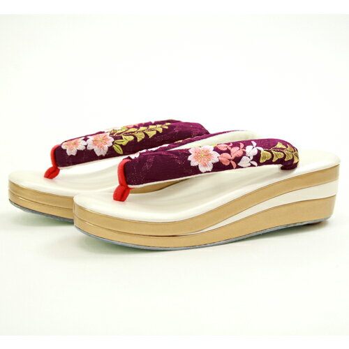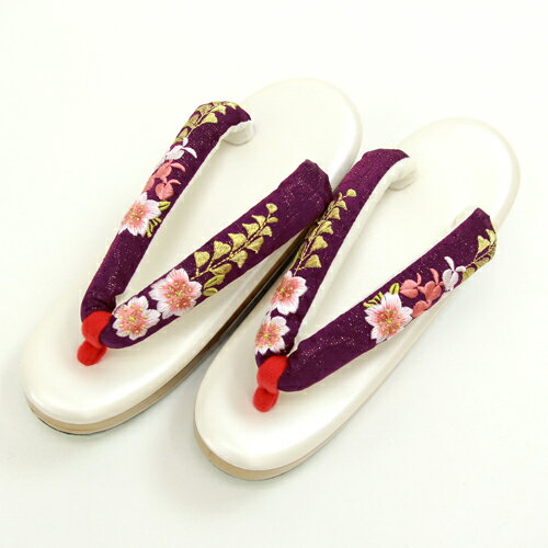 鼻緒にはレトロなかわいさが 人気の桜と藤の刺繍入り。