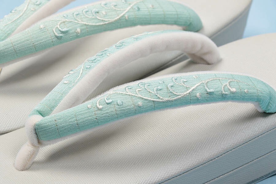 衿秀 夏の鼻緒付き草履 台は白菫色の台で 鼻緒は絽の生地に唐草模様の刺繍入りの鼻緒 夏の着物に合わして楽しんでいただけたらと思います 商品詳細 サイズ 台の長さ;約24.5センチ 台の幅;約8.5センチ 台の高さ;約5センチ 品質;天・巻き 綿 芯;コルク 参考使用方 付け下げ・小紋・無地・紬などの着物に 注意点 台に水が濡れないように気を付けてください。